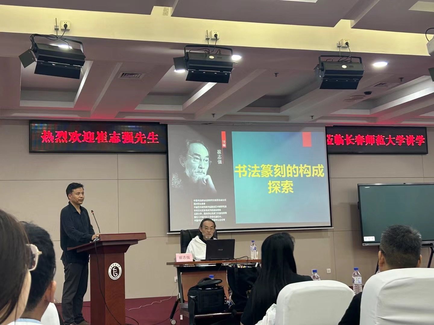 9月10日下午,著名书法篆刻家、西泠印社理事崔志强先生在我校图书馆报告厅做了题为《书法篆刻的构成探索》的专题讲座。best365官网登录入口部分师生和省内部分书法爱好者聆听了本场讲座。讲座由长春师范大学书法教育研究中心主任、博士生导师苏显双教授主持。